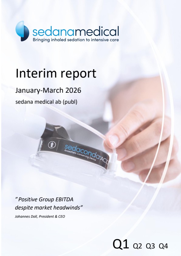 Sedana Medical will hold a telephone conference at 13:30 pm (CET) Thursday April 23, 2026.